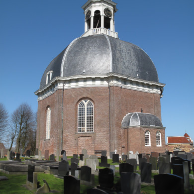 Ter plaatse ener oudere, op ruim kerkhof, in 1777-'79 gebouwde kerk op centraal grondplan naar ontwerp van stadsbouwmeester van Harlingen Willem Douwes. Hoofdingang omlijst en bekroond door fronton met 1778. In de kerk preekstoel met achterschot en klankbord door J.G. Hempel met bijpassend doophek versierd door z.g. vlampotten op de hoeken. Twee familiebanken, tochtportaal, alles eind 18e eeuw. Eénklaviers orgel van J. Mitterreither uit 1780. Geschilderd gedenkbord inzake de oudere en tegenwoordige kerk. Onder de vloer een zerk door Vincent Lucas, 1547. Op het kerkhof talrijke 17e eeuwse zerken. Klokkestoel met klok van W. Wegewaert, 1593, diam. 113 cm. Mechanisch torenuurwerk Gebr. van Bergen, Midwolda, 1924, nr. 7985.