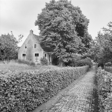 Kosterij Herv. kerk. Eenvoudig pand onder dwars zadeldak tussen topgevels. In de zijgevel is een grote steen met afbeelding van de nabijgelegen kerk geplaatst.