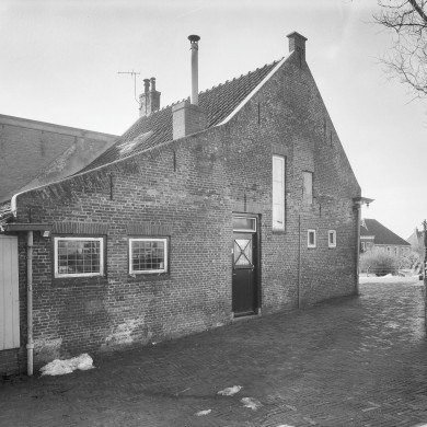 Kosterij Herv. kerk. Eenvoudig pand onder dwars zadeldak tussen topgevels. In de zijgevel is een grote steen met afbeelding van de nabijgelegen kerk geplaatst.