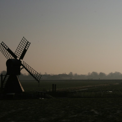 Kop-hals-rompboerderij in de huidige vorm grotendeels uit het derde kwart van de 19e eeuw. Het woonhuis draagt een pannen zadeldak tussen puntgevels met schoorstenen, waarop borden. Het stalgedeelte waarvan het houtskelet uit de 18e eeuw dateert wordt gedekt door een hoog, pannen schilddak.