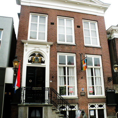 Huis met 17e eeuwse trapgevel met natuurstenen sierdelen.