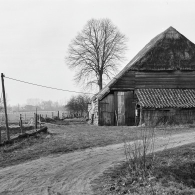 Fraai complex aan de oever van de Reest, eertijds het tolhuis bij de overgang over dit riviertje. boerderij onder een met riet en pannen gedekt schilddak, door jaaranker gedateerd 175.. Links een aanbouwtje onder pannenzadeldak tussen topgevels met vlechtingen. Vierroeden hooiberg.