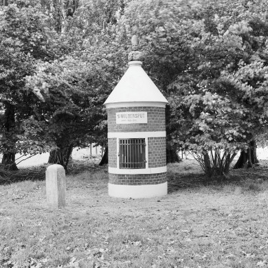 Oude grenssteen, daterende uit 1648. Destijds de scheiding vormend tussen de Zeven Provincien en Oostenrijk. De paal is aan de ene zijde voorzien van het wapen der Zeven Provincien en aan de andere zijde de adelaar van Oostenrijk.
