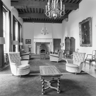 REFTER, haaks op Commissariswoning staand rechthoekig gebouw, met natuursteen bekleed, zadeldak gevat tussen trapgevels aan voor- en achterzijde; in de gevel aan de Groenmarkt hoge spitsboogvensters.