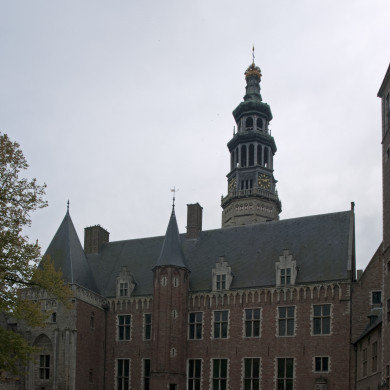 MUNTTOREN. Aan het Abdijplein uitgebouwde vierkante toegangstoren tot het Pandhof midden XV. Het zandstenen front vertoont boven de poortboog een baldakijn en een venster met wimberg; het wordt boven de tweede geleding afgesloten door een stenen balustrade met boogfries.