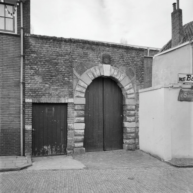 V.m. Sint Sebastiaansdoelen. In 1594 gebouwd ter plaatse van het in 1578 afgebroken Augustijnenklooster. Van het oorspronkelijke gebouw zijn slechts bewaard een fragment met zijtrapgevels en een achtkante toren. Poortje van 1594 in de Schuttershofstraat.