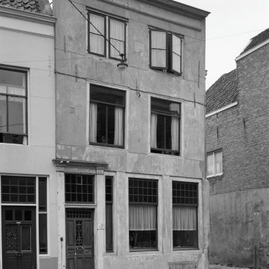 Huis met gepleisterde lijstgevel. Eenvoudige voordeuromlijsting met zijlicht. Kelderluik. XVIII-XIX.