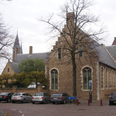PANDHOF, eerste kwart zestiende eeuw. Door netgewelven overdekte kloostergang, de wanden rondom met natuursteen bekleed. Tussen de bogen die de hof omringen steunberen met nissen, bekroond met hogels.