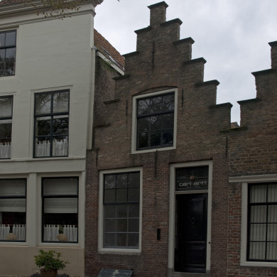 Pand met trapgevel, schuifvensters met roedenverdeling. Zeventiende - achttiende eeuw.