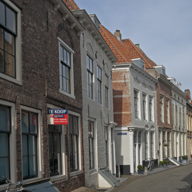 HUIS met geverfde rechte gevel met gootlijst op klossen. Boven de ramen op de verdieping kielbogen, met verdiepte velden. Gedeeltelijk is de geprofileerde stenen puilijst nog aanwezig, waarop het bovendeel van de gevel iets overkragend. Voordeuromlijsting in eenvoudige Lodewijk XVI-trant.