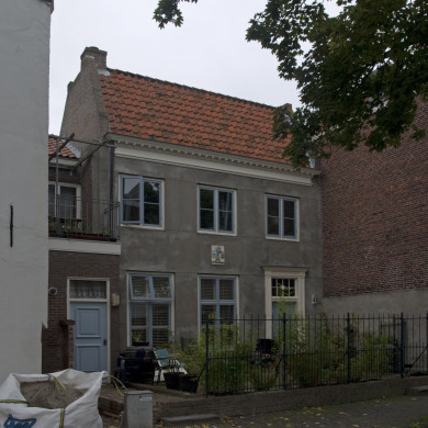 Huis met gepleisterde rechte gevel.