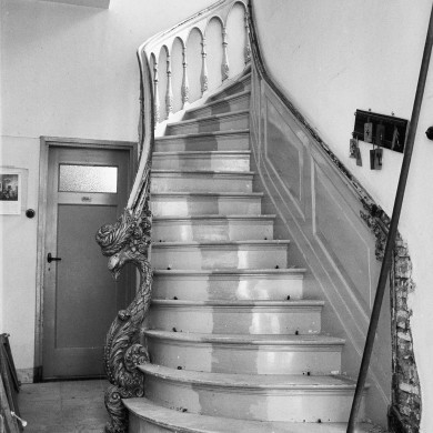 Huis met geverfde rechte gevel. Kroonlijst met panelen en consoles. Voordeuromlijsting in eenvoudige Lodewijk XVI trant. Stoep. XVIII.