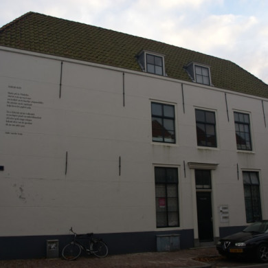 Huis met gepleisterde lijstgevel. In de onderbouw een garage ingebroken. XVIII.