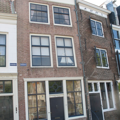 Pakhuis met rechte gevel, in lijst gedateerd 1738. De hijsbalk boven het door de lijst heengestoken middenluik is bekroond met een loden leeuwtje. XVIII.
