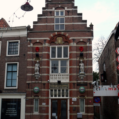Een in 1945 hierheen overgebrachte poort, die voorheen het Doelenterrein aan de zijde van de Molenberg afsloot. Geblokte natuurstenen boogpoort, bekroond door het wapen van de schutterij (St. Sebastiaanskruis). In de zwikken gebeeldhouwde stenen.