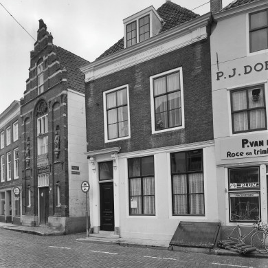 HUIS met eenvoudige lijstgevel. Benedenstuk gepleisterd. Puibalk. Eenvoudige voordeuromlijsting met consoles. Stoep. XVIII-XIX.