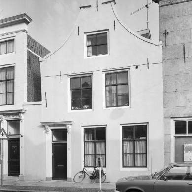 HUIS met gepleisterde lijstgevel. Eenvoudige voordeuromlijsting met consoles; muurankers. Stoep. XVIII-XIX.