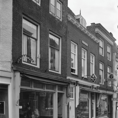 HUIS met geverfde lijstgevel waarvan bovenstuk overkragen op de gepleisterde pui. Op de verdieping in de dammen gebeeldhouwde stenen met wapens van Zeeland en Middelburg en anno 1652; hardstenen banden; boven de vensters tudorbogen waarin sluitstenen met gebeeldhouwde engelenkopjes.