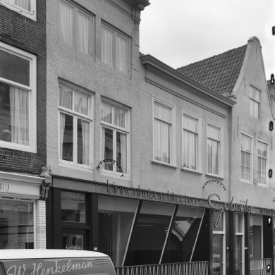 Huis met rechte gevel, in lijst gedateerd 1724. Consoles. Winkelpui. XVIII.