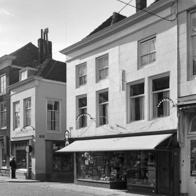 Huis met gepleisterde lijstgevel. Winkelpui. XVIII.