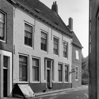 Breed HUIS met geverfde rechte gevel. Gootlijst op consoles; eenvoudige voordeuromlijsting met zijlichten. Schuin kelderluik. XVII-XVIII.