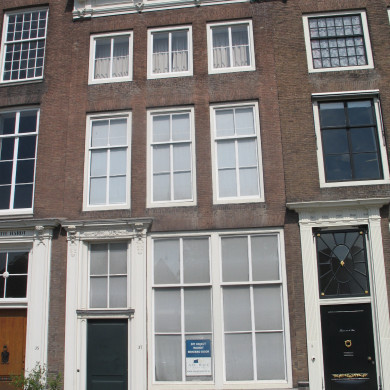 Huis genaamd "Het Witte Hardt". Lijstgevel op plint van hardsteen met zwarte banden. Kroonlijst met panelen en gesneden consoles. De vensters van de bovenste verdieping met oude roedenverdeling. Voor het middenvenster van de hoofdverdieping een balkon. Voordeuromlijsting en rozetbovenlicht.