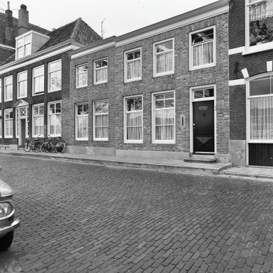 PAND met geverfde lijstgevel. Lijst met hoekstukken en gesneden consoles. Getoogde dakkapel. Staafankers. Begane grond gepleisterd en met dubbele voordeur. XVIII.