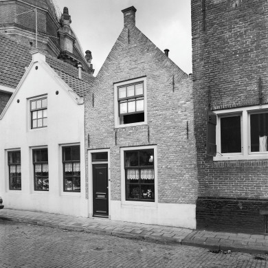 Pakhuis met kruisramen, diefijzers en hijsbalk. Schuin kelderluik. XVII.