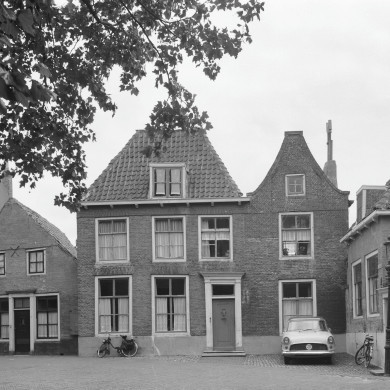 Verdiepingloos bescheiden pand met rechte gevel aan de straat. Voordeur met gekoppelde kozijnen. XVIII-XIX.