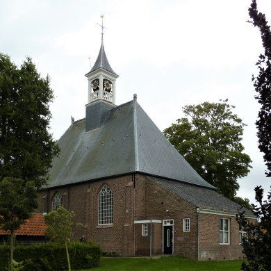 Vrij, op een straathoek gelegen bakstenen kerkje, in hoofdvorm daterend uit 1644, met toegangspoortje onder schilddak en op de hekposten zandstenen miniatuur-burchten, een ingangsportaal en een vierkant klokkentorentje op de nok van de kerk. De consistorie tegen de westgevel dateert volgens het jaartal in de eerst gelegde steen uit 1928. Ten zuidwesten van de kerk ligt een klein kerkhofje.
