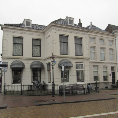 Pand met trapgevel, 17e eeuw. Onderpui met geprofileerde puibalk, en vensters met zesruitsschuiframen, begin 19e eeuw. In de verdiepingsvensters 16-ruitsschuiframen.