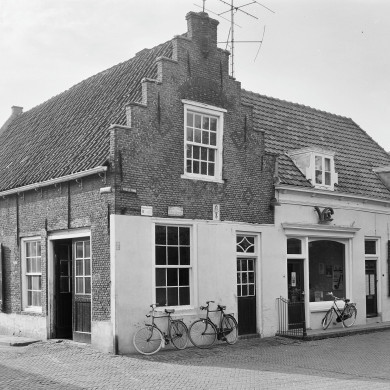 Pand uit de 17e eeuw met zadeldak en in de 19e eeuw beklampte puntgevel.