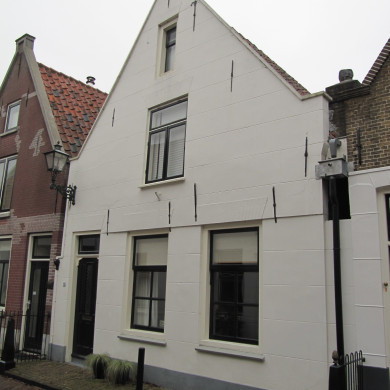 Pand uit de 17e of 18e eeuw met zadeldak en eenvoudige, gepleisterde puntgevel.
