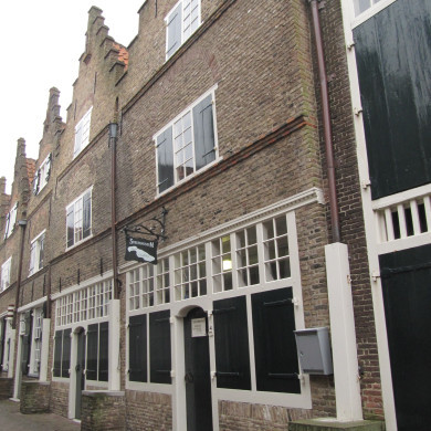 Gerestaureerd 17e-eeuws PAND met trapgevel versierd met geprofileerde waterlijsten, ontlastingsbogen en gemetselde toppilaster op console. De achtergevel wordt gevormd door de noordmuur van het overigens gesloopte koor der Hervormde Kerk.