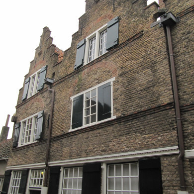 17e-Eeuw PAND met gerestaureerde trapgevel, versierd met geprofileerde waterlijsten en een gemetselde toppilaster op consoles. Benedenvenster met schuifraam, waarin kleine roedenverdeling en luiken; verdiepingsvensters met luiken en middenstijlen. Ontlastingsbogen.