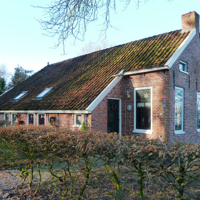 Keuterijtje bestaande uit woning en korte schuur beide onder een zadeldak met aflegering aan schuurgedeelte. De topgevel van de woning is boven de vensters van de begane grond gesloten op zeer kleine ontluchtingsopeningen na. Vensters door roeden-zes ruiten verdeeld.