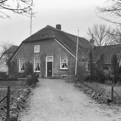 Eenvoudige 18e eeuwse boerderij met schuur.