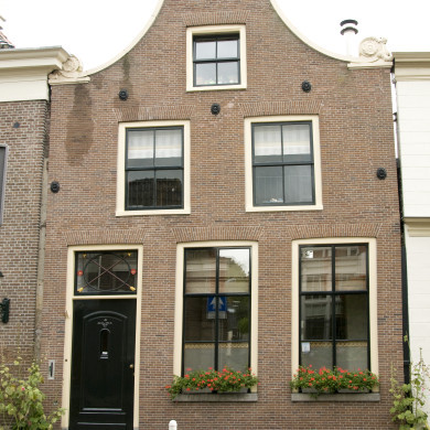 Huis met trapgevel in Haarlemse trant, 1620. Pui, XVIII. Ingang met snijraam, XIXa, in een omlijsting met verdiepte pilasters.