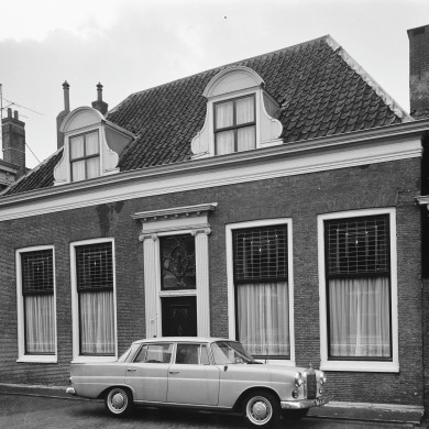Huis met schilddak en lijstgevel, XVIII. In het midden een gesneden deur met snijraam in een ionische pilasteromlijsting, XIXa. Aan de straat twee dakkapellen met gebogen fronton en vleugelstukken.