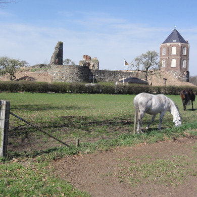 Kasteel van Montfort. RUINE van een veelhoekige burcht met vijf rond uitgebouwde torens, XVIIc gebouwd van natuursteen, ingrijpend gewijzigd XVI, verwoest 1796. Op een der torenruines restant van een achthoekig jachthuis, XIX.
