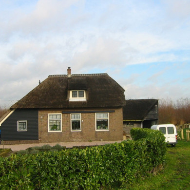 Lage boerderij-achtige hofstede, oude roedenverdeling, vensters 18e eeuw.