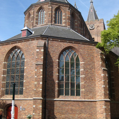 NED. HERV. KERK, 1500. Laatgotische basiliek. Kerk met houten tongewelf met beschildering van 1518. Taferelen in laatgotische omlijstingen voorstelling concordantie O.en N. Testament. Zijbeuken en kooromgang met stenen overwelving. Zuilen kapitelen koor met beeldhouwwerk, gesneden fraai koorhek 1531. Kooromheining 1626. Orgel met Hoofdwerk, Bovenwerk, Rugwerk en vrij Pedaal, in 1862 gemaakt door C.G.F. Witte. Eénklaviers kabinet orgel, gemaakt in 1784 door J. Strömphler, afkomstig van de Nederlandse Bachvereniging.