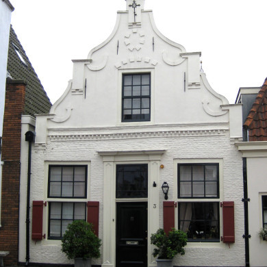 Gepleisterd pand met klokgevel, schuiframen met kleine roeden, XVIII.