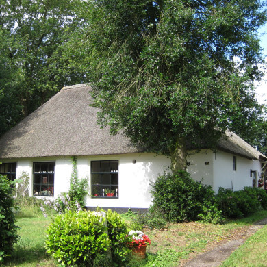 Boerderij "Ridderhoeve" voorheen Meerlust; gepleisterd dwarshuis door riet gedekt, XVII.