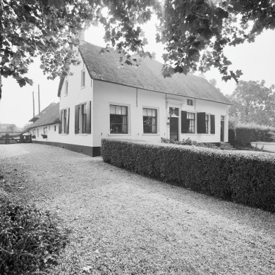 T-Huis van het Betuwse type, oostelijk van de Herv. Kerk, Blijkens ankers in de zuidgevel daterend uit 1720. Het gepleisterde woongedeelte draagt een rieten zadeldak en bezit een deuromlijsting met Empireconsoles. In de twee vensters rechts van de ingang negenruitsschuiframen. Stal met overstek. Oude roedenberg.