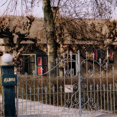 Hoeve "nooitgedacht". Boerderij uit de 18e eeuw met rechts een uitgebouwde opkamer. Gepleisterde voorgevel; vensters met luiken en rieten schilddak. Zomerhuis op het erf.