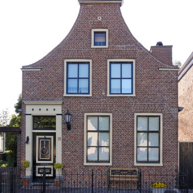Eenvoudig woonhuis met verdieping onder zadeldak met voorschild.
