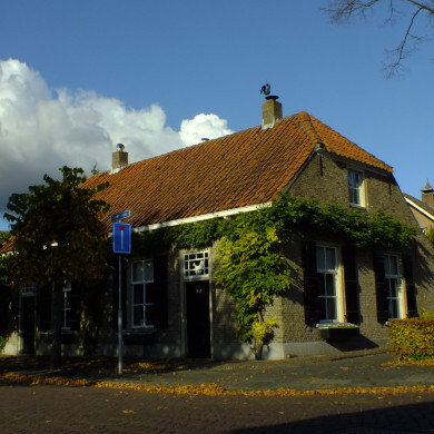 Dorpshuis met zadeldak, ramen met kleine roedenverdeling Eind 18e eeuw.
