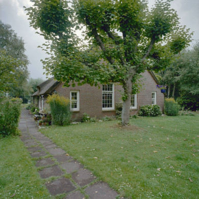 Visserswoning of boerderij, wellicht 17e eeuw, onder rieten wolfdak en met gepleisterde voorgevel, waarin een houten kruiskozijn met luiken. In de voorkamer balkenzoldering met korbelen uit de bouwtijd.