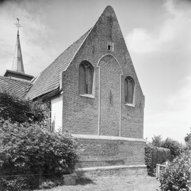 Bijna geheel gecement gebouw, bestaande uit eenbeukig schip met rechtgesloten koor en twee lagere dwarspanden; de muren worden niet door steunberen geschoord. Schip en zuidelijke transeptarm XV B, koor XVI B, noorder transeptarm XVI B-XVIII; wijdingskruisen tevoorschijn gekomen van onder de pleisterlagen in de transeptarmen (XVI). Preekstoel XVIIb/c; koperen predikantslezenaar XVII B. Spiltrapje XVII.